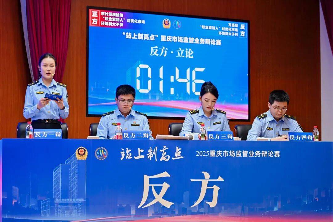 四支代表队环绕“注册登记应以形式审查仍是本色审查为从”“防御性商标注册应予支撑仍是不该支撑”等市场监管一线难题展开辩说。辩手结律律例取工做现实,展示了专业素养取逻辑思辨能力。