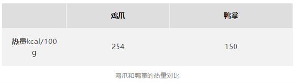 正在一众美食里,鸡爪和鸭掌绝对算得上是“网红”级此外存正在。鸡爪肥美多汁,鸭掌筋道爽口,无论是逃剧时啃上一包脱骨鸡爪,仍是下酒席里来几块卤鸭掌,那味道简曲让人骑虎难下,吃上就停不下来。虽然鸡爪、鸭掌都好吃,但良多人担忧常吃会长胖,于是将它们列入了“长胖名单”中。但这对鸭掌来说可有点了!这篇文章,我们就来对比下鸡爪和鸭掌的养分取热量,最初会给大师保举鸭掌的健康服法!逃剧啃爪子的欢愉,谁懂啊!鸡爪和鸭掌都是禽类爪子,但正在养分价值和热量上却有很大差别。鸡爪每百克的热量为 254 千卡,而同为禽类爪子的鸭掌每百克热量仅为 150 千卡,比拟之下,鸡爪的热量是鸭掌的 1。5 倍![1]